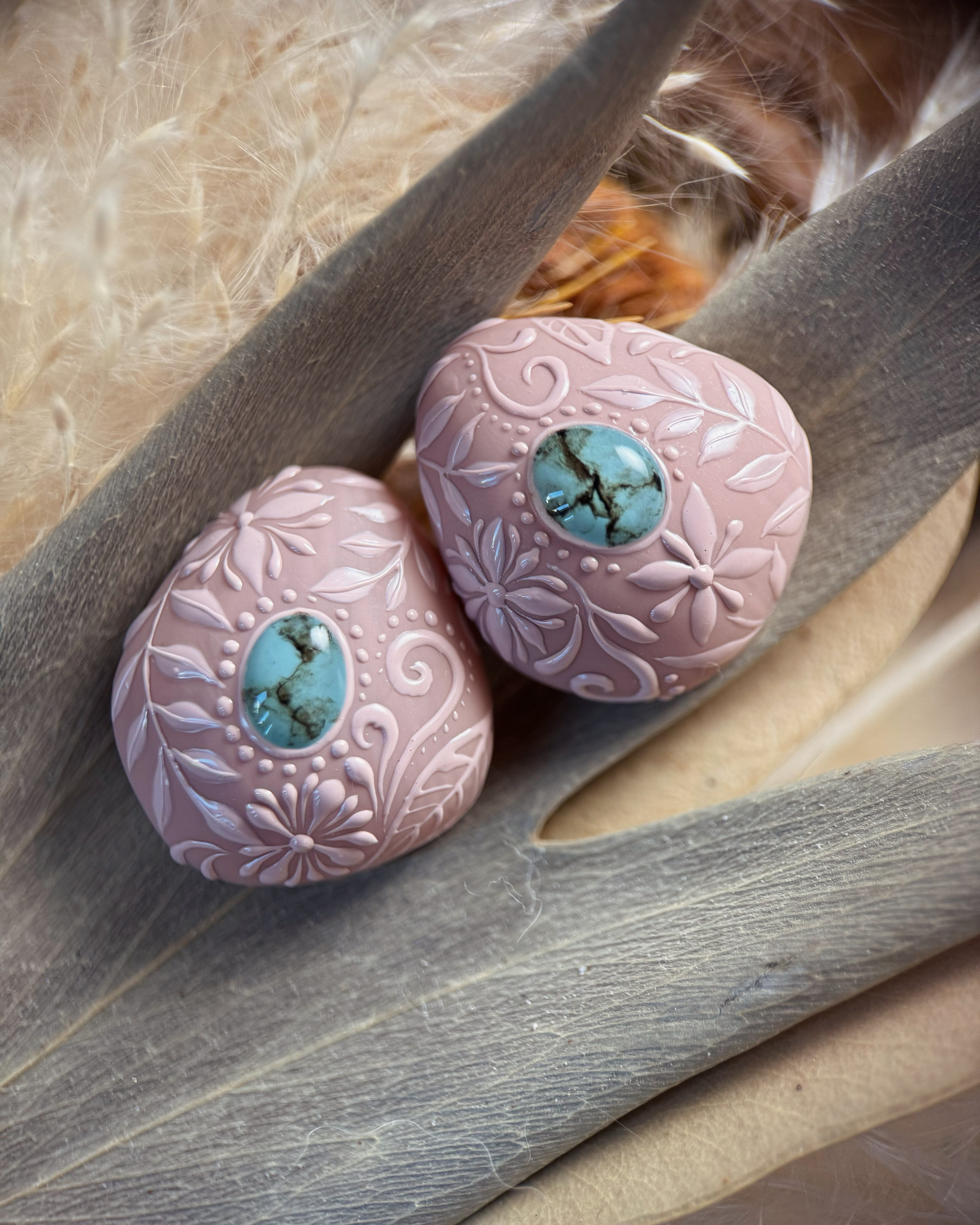 くすみピンクにターコイズ