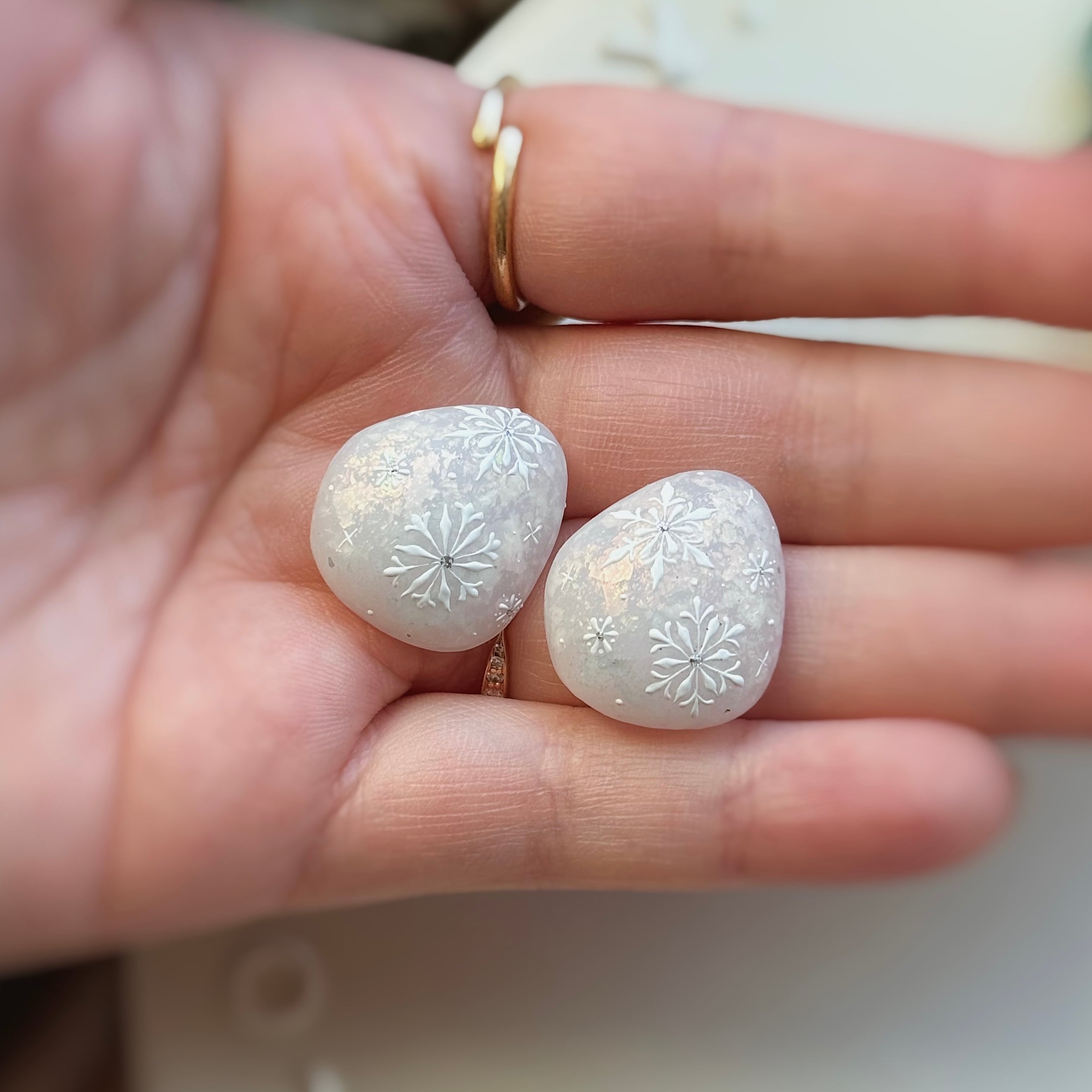 ポコポコ雪の結晶を描きました♡